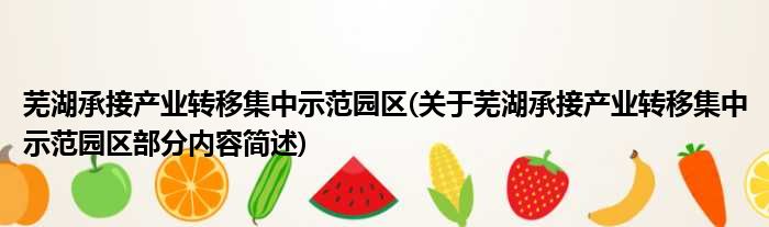 芜湖承接产业转移集中示范园区(关于芜湖承接产业转移集中示范园区部分内容简述)