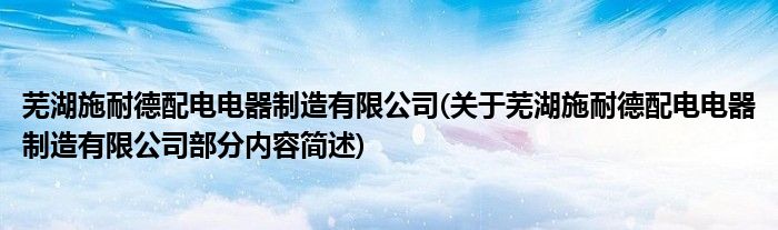 芜湖施耐德配电电器制造有限公司(关于芜湖施耐德配电电器制造有限公司部分内容简述)