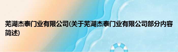 芜湖杰泰门业有限公司(关于芜湖杰泰门业有限公司部分内容简述)