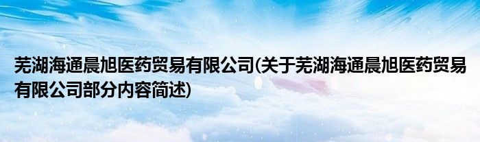 芜湖海通晨旭医药贸易有限公司(关于芜湖海通晨旭医药贸易有限公司部分内容简述)