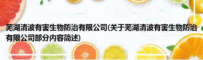 芜湖清波有害生物防治有限公司(关于芜湖清波有害生物防治有限公司部分内容简述)