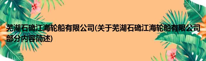 芜湖石硊江海轮船有限公司(关于芜湖石硊江海轮船有限公司部分内容简述)
