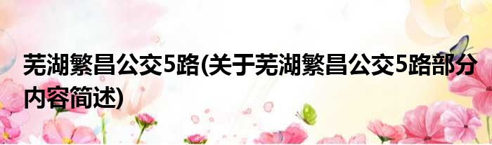 芜湖繁昌公交5路(关于芜湖繁昌公交5路部分内容简述)