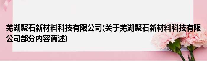 芜湖聚石新材料科技有限公司(关于芜湖聚石新材料科技有限公司部分内容简述)