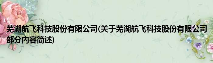 芜湖航飞科技股份有限公司(关于芜湖航飞科技股份有限公司部分内容简述)