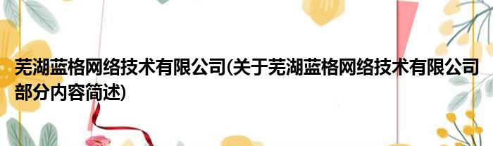 芜湖蓝格网络技术有限公司(关于芜湖蓝格网络技术有限公司部分内容简述)