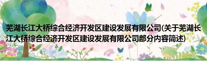 芜湖长江大桥综合经济开发区建设发展有限公司(关于芜湖长江大桥综合经济开发区建设发展有限公司部分内容简述)