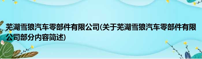 芜湖雪狼汽车零部件有限公司(关于芜湖雪狼汽车零部件有限公司部分内容简述)