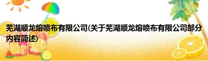 芜湖顺龙熔喷布有限公司(关于芜湖顺龙熔喷布有限公司部分内容简述)
