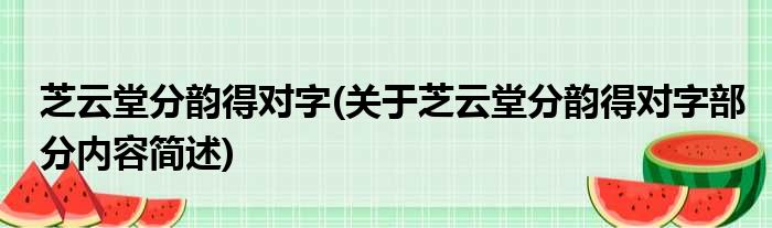 芝云堂分韵得对字(关于芝云堂分韵得对字部分内容简述)