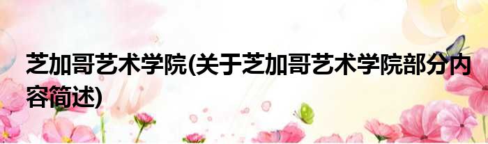 芝加哥艺术学院(关于芝加哥艺术学院部分内容简述)