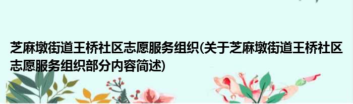 芝麻墩街道王桥社区志愿服务组织(关于芝麻墩街道王桥社区志愿服务组织部分内容简述)