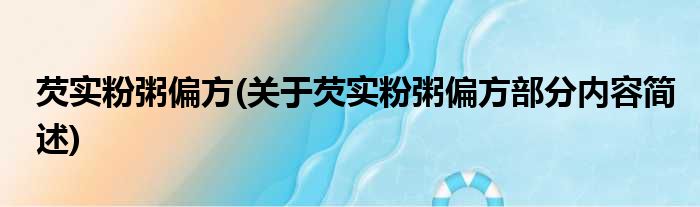 芡实粉粥偏方(关于芡实粉粥偏方部分内容简述)