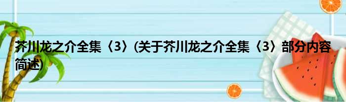 芥川龙之介全集〈3〉(关于芥川龙之介全集〈3〉部分内容简述)