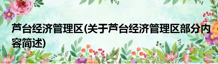 芦台经济管理区(关于芦台经济管理区部分内容简述)