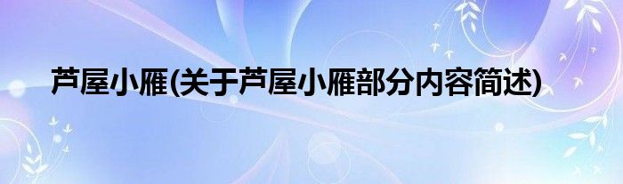 芦屋小雁(关于芦屋小雁部分内容简述)