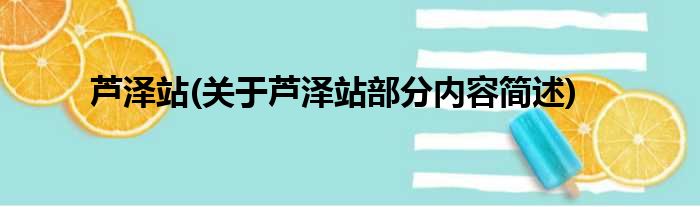 1、 芦泽站(日语:芦沢駅/あしさわえき Ashisawa eki ),是一个位于山形县尾花泽市大字芦泽,属于东日本旅客铁道(JR东日本)奥羽本线的铁路车站。