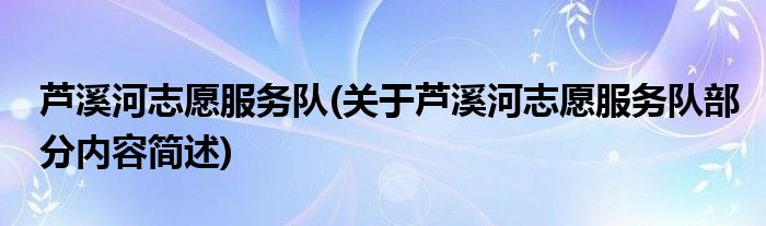 芦溪河志愿服务队(关于芦溪河志愿服务队部分内容简述)