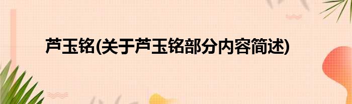 芦玉铭(关于芦玉铭部分内容简述)