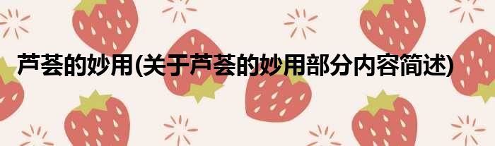 芦荟的妙用(关于芦荟的妙用部分内容简述)