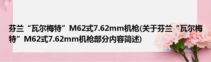 芬兰“瓦尔梅特”M62式7.62mm机枪(关于芬兰“瓦尔梅特”M62式7.62mm机枪部分内容简述)