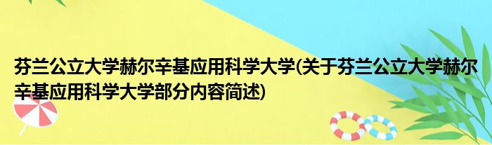 芬兰公立大学赫尔辛基应用科学大学(关于芬兰公立大学赫尔辛基应用科学大学部分内容简述)
