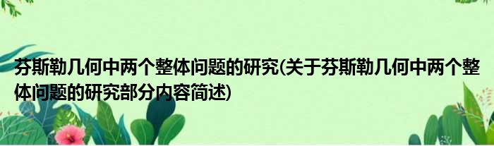 芬斯勒几何中两个整体问题的研究(关于芬斯勒几何中两个整体问题的研究部分内容简述)