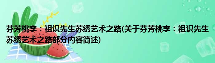 芬芳桃李:祖识先生苏绣艺术之路(关于芬芳桃李:祖识先生苏绣艺术之路部分内容简述)