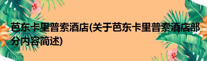 芭东卡里普索酒店(关于芭东卡里普索酒店部分内容简述)