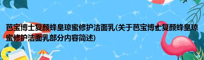 芭宝博士复颜蜂皇琼蜜修护洁面乳(关于芭宝博士复颜蜂皇琼蜜修护洁面乳部分内容简述)