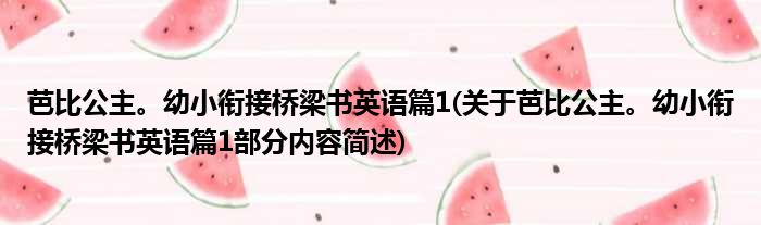 大家好,今天小方来说说一篇关于芭比公主。幼小衔接桥梁书英语篇1,关于芭比公主。幼小衔接桥梁书英语篇1部分内容简述的文章,那么现在就为大家来简单介绍下,希望对各位小伙伴们有所帮助。
