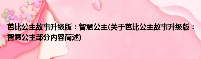 芭比公主故事升级版:智慧公主(关于芭比公主故事升级版:智慧公主部分内容简述)