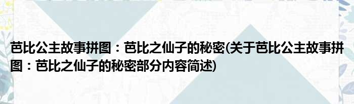 大家好,今天小方来说说一篇关于芭比公主故事拼图:芭比之仙子的秘密,关于芭比公主故事拼图:芭比之仙子的秘密部分内容简述的文章,那么现在就为大家来简单介绍下,希望对各位小伙伴们有所帮助。