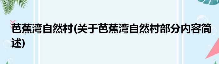 芭蕉湾自然村(关于芭蕉湾自然村部分内容简述)