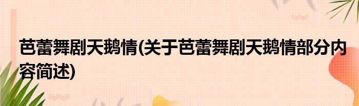 芭蕾舞剧天鹅情(关于芭蕾舞剧天鹅情部分内容简述)