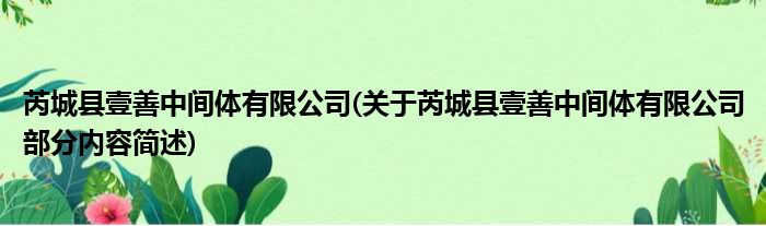 芮城县壹善中间体有限公司(关于芮城县壹善中间体有限公司部分内容简述)