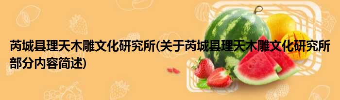 芮城县理天木雕文化研究所(关于芮城县理天木雕文化研究所部分内容简述)