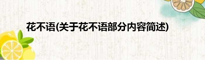 大家好,今天小方来说说一篇关于花不语,关于花不语部分内容简述的文章,那么现在就为大家来简单介绍下,希望对各位小伙伴们有所帮助。