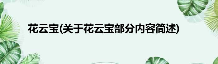 大家好,今天小方来说说一篇关于花云宝,关于花云宝部分内容简述的文章,那么现在就为大家来简单介绍下,希望对各位小伙伴们有所帮助。