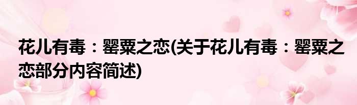 花儿有毒:罂粟之恋(关于花儿有毒:罂粟之恋部分内容简述)