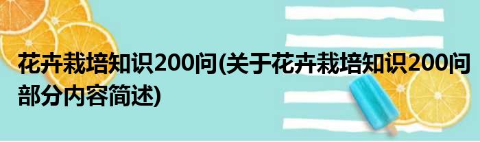 花卉栽培知识200问(关于花卉栽培知识200问部分内容简述)