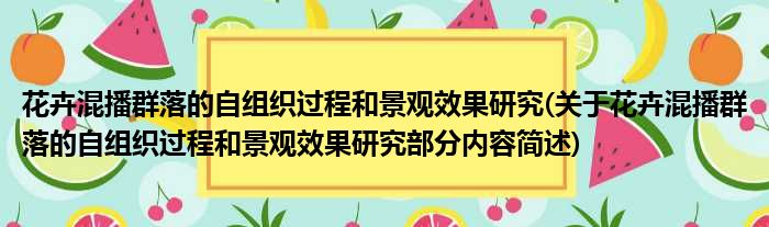 花卉混播群落的自组织过程和景观效果研究(关于花卉混播群落的自组织过程和景观效果研究部分内容简述)