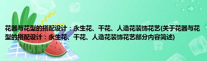 花器与花型的搭配设计:永生花、干花、人造花装饰花艺(关于花器与花型的搭配设计:永生花、干花、人造花装饰花艺部分内容简述)