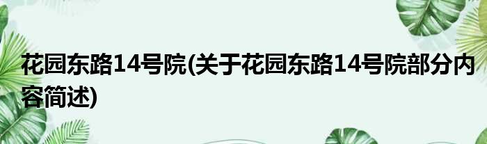 花园东路14号院(关于花园东路14号院部分内容简述)