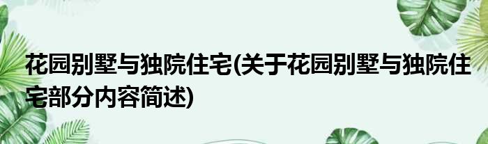 花园别墅与独院住宅(关于花园别墅与独院住宅部分内容简述)