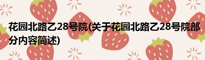 花园北路乙28号院(关于花园北路乙28号院部分内容简述)