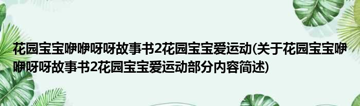 花园宝宝咿咿呀呀故事书2花园宝宝爱运动(关于花园宝宝咿咿呀呀故事书2花园宝宝爱运动部分内容简述)