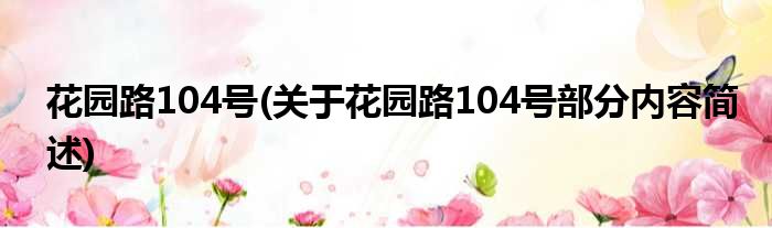 大家好,今天小方来说说一篇关于花园路104号,关于花园路104号部分内容简述的文章,那么现在就为大家来简单介绍下,希望对各位小伙伴们有所帮助。