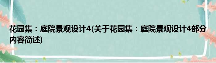 1、 《花园集:庭院景观设计4》是2020年江苏凤凰科学技术出版社出版的图书。