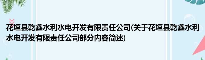 花垣县乾鑫水利水电开发有限责任公司(关于花垣县乾鑫水利水电开发有限责任公司部分内容简述)